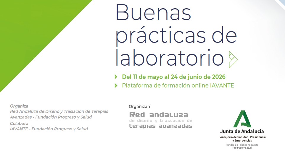 Nueva edición de nuestro Curso Online de Buenas Prácticas de Laboratorio que tendrá lugar del 11 de mayo al 24 de junio del 2026. Organizado y actualizado por los profesionales de la Red Andaluza de Diseño y Traslación de Terapias Avanzadas de la Fundación Pública Andaluza Progreso y Salud (Consejería de Sanidad, Presidencia y [...]